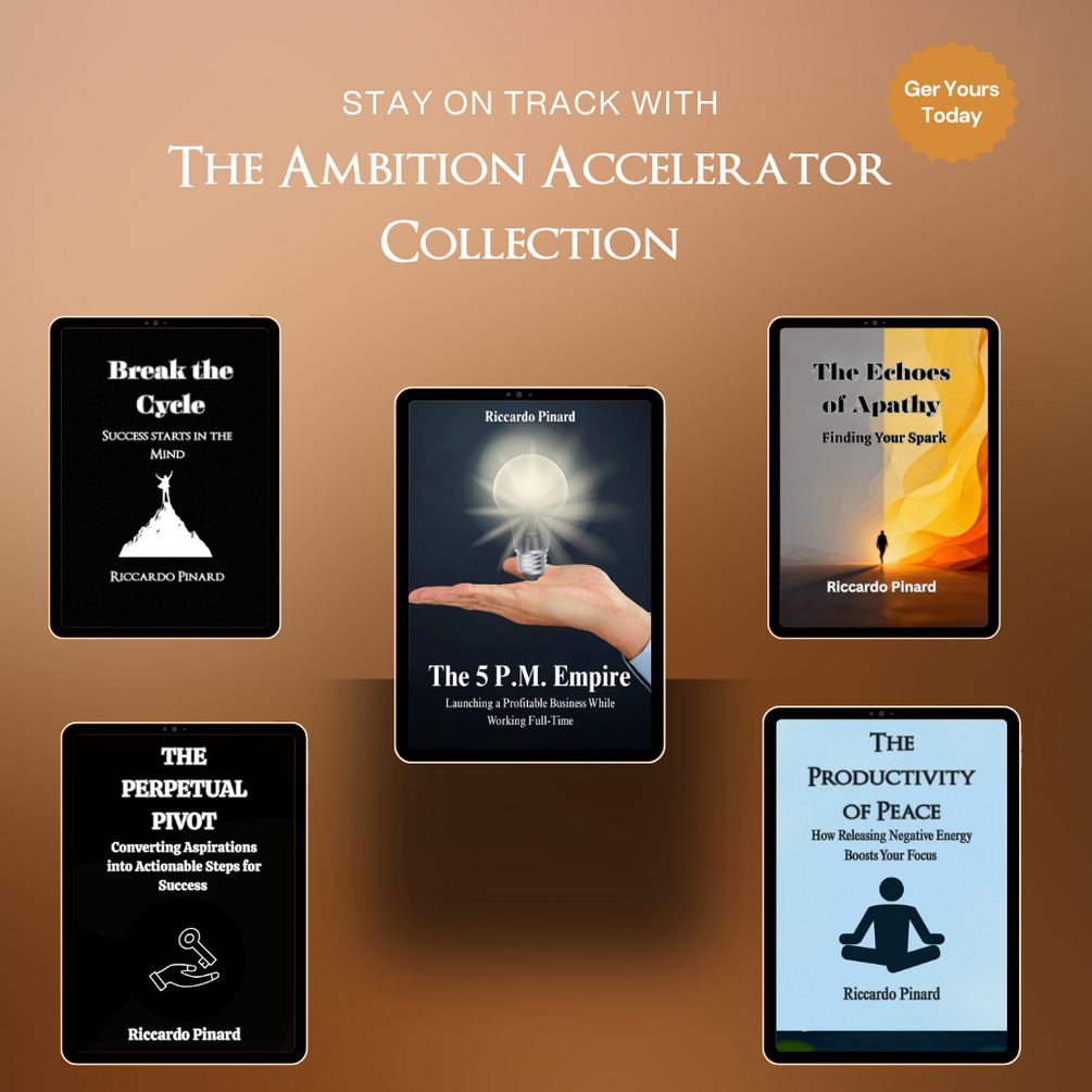 Unlock your full potential with The Ambition Accelerator Collection — a powerhouse bundle of five transformative books designed to ignite focus, free your energy, and turn aspirations into real, measurable success. Whether you’re balancing a day job while building your dream, breaking free from mental roadblocks, or redefining what success means to you, this collection guides you step-by-step through the mindset, strategy, and momentum required to thrive.